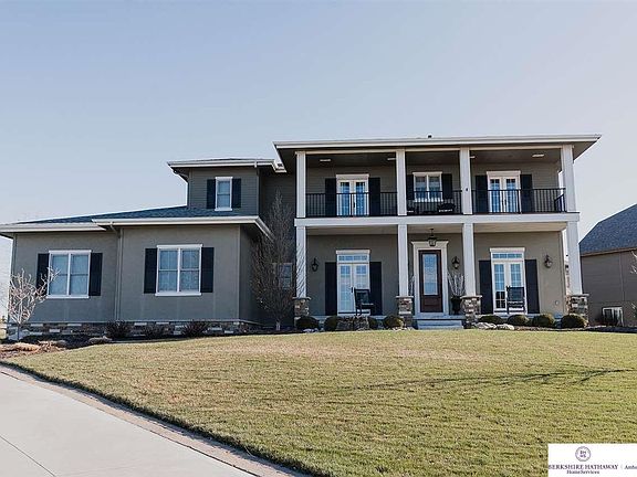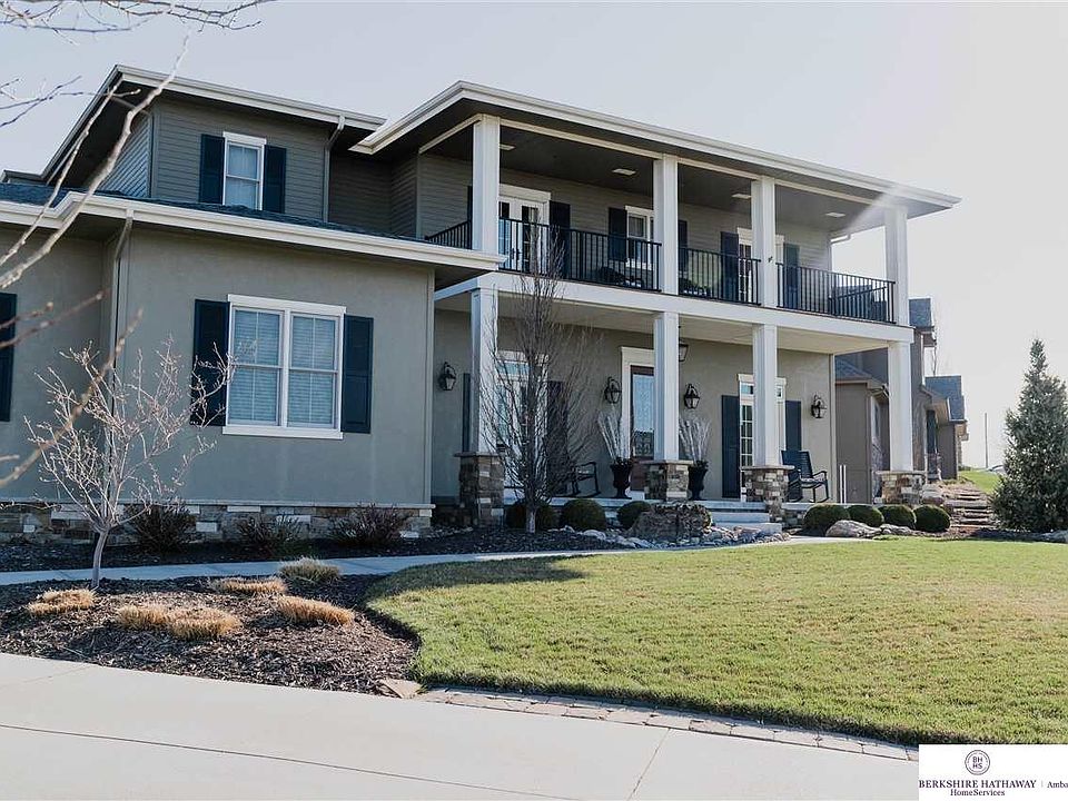 Looking for character but hard to find in Elkhorn school district? One of a kind detailed stunning New Orleans inspired home that has fresh, transitional, high end features throughout. Gourmet kitchen features Jenn Air appliances, gas cooktop, cozy fireplace. Great room has 2 story coffered ceiling, fireplace, den off the great room w/bar & beverage refrigerator. Detail doesn't stop! Master suite has luxury finish, fireplace, large master closet, walk-in shower, dual vanities & tub. On-suite balcony access and charming claw foot soaker tub. Beautifully landscaped yard w/circle drive, pergola, patio, water feature & firepit. New roof and gutters in 2017, security system, sound system. Conveniently located by new Elkhorn grade school, walking distance to new neighborhood park, future new Elkhorn High School, shopping, restaurants and medical facilities.