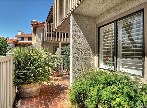 Charming, meticulously-maintained ground level home facing lush, tree-lined greenbelt in coveted Pier Pointe community. Bright, open floor plan features lovely brick fireplace with automatic gas starter and decorative logs, new wood-look vinyl flooring in dining area and kitchen, ceiling fans, and glass mirrored wall and custom shelves. Additional upgrades include new stainless sink in kitchen, fresh paint, recessed lighting, and gorgeous plantation shutters in bedroom and living room. Spacious bedroom has dual wardrobes and ensuite bath has newer ceramic tile flooring. Enclosed patio adorned with brick flooring is just steps from private greenbelt and tennis court. One car garage is freshly painted with vaulted ceiling and storage loft and an automatic garage door opener. This unit has a deeded parking spot in front of garage in addition to the guest parking. Hurry, this one wont last!!