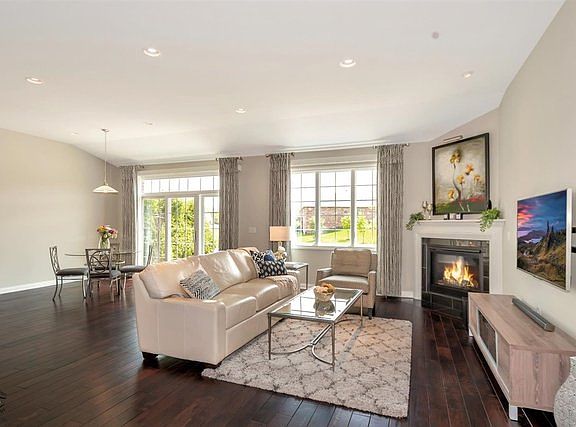 Nestled in the friendly community of the highly sought-after Whisper Creek subdivision, is a meticulously-maintained 2 Bed +Den, 2 Bath, Ranch Townhome, with a gorgeous pond view that bring tons of natural light in. The beautiful recessed-lighting throughout, perfectly accents the many upgraded features and custom detail that was put into this home to give it that luxurious feel. From the hand scraped Exotic Acadia Hardwood flooring, to the Granite counter-tops and stainless-steel appliances in the exquisite kitchen, right down to the 6-panel Solid Core interior doors and the gas fire-place encased in granite - this home is truly a must see! Spacious Master Bedroom Suite with high Tray Ceilings, and 2 separate walk-ins provide you with ample closet space. The Master Bathroom comes complete with dual bathroom vanities, a large Roman Soaking Tub, in addition to a large standing shower with glass doors. Great-sized 2nd bedroom with plenty of closet space. 2nd bathroom with standing shower in like-new condition. Just through the laundry/utility room, you will find an immaculate, heated 2 car-garage with an insulated door and stunning professional grade Epoxy flooring, which can also be found in the HUGE unfinished basement, equipped with rough plumbing for a full bathroom. Step outside onto the extended concrete patio with heightened landscaping to allow for privacy and serene views of the pond.