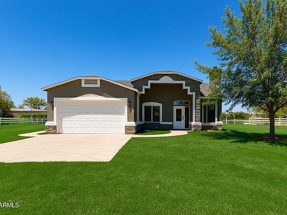 NEW LOWER PRICE!! Nestled on a generous corner lot, this horse property is a GEM! Bring your toys! Huge corner acre lot ready for POOL an RV garage ! A charming 2-car garage welcomes you home, while inside, you'll find wood-look tile floors and a cozy fireplace that invites you to relax. Delightful kitchen displays stainless steel appliances, sleek Quartz site counters and backsplash, white shaker cabinetry, and a center island with breakfast bar! primary bedroom is your private retreat with sliding doors to the backyard, dual ceramic vessel sinks, a walk-in closet, and spa-like vibes. Out back, the spacious yard and covered patio set the scene for endless possibilities, and those mountain views? !Agent related to seller.Seller holds active real estate license in Arizona