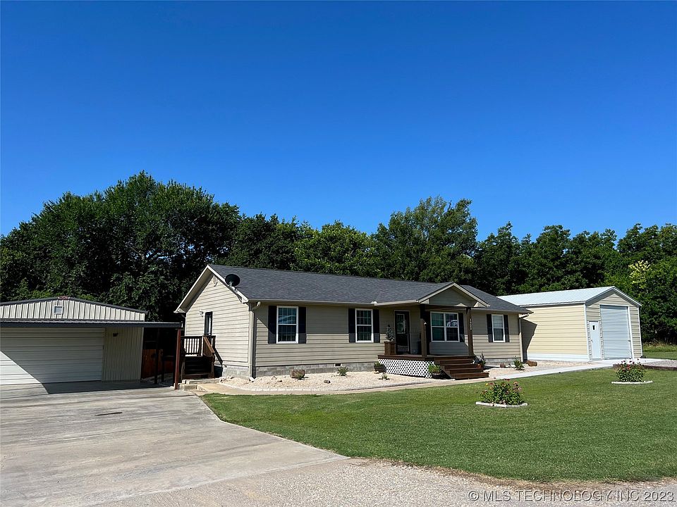 JUST ON THE EDGE OF TOWN, 3 bedroom & 2 bath sitting on 1/2 acre. Inside this beautiful home you will love the large master bath with custom tiled shower and walk in closet, you will also enjoy the open floor plan.The kitchen has farmhouse sink and a very nice island, all the appliances stay, refrigerator, oven that also air fryer, dishwasher, washer & dryer. Outside you will find so many extras, chain link fenced yard, cellar, 24x30 insulated garage with automatic door opener, Shop building with overhead & walk through door, chicken coop, pig pen and covered front & back porch to enjoy. Bring the Kids, grandkids and friends and start calling this place HOME.