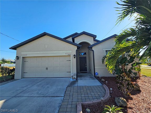 LOCATION, LOCATION, LOCATION! This highly sought after SW Cape Coral location is one of the safest areas in Cape Coral. If you're looking for the perfect home or even an investment property, look no further! This beautiful home boasts an oversized corner lot and plenty of curb appeal which includes tons of high end landscaping & curbing. This 3 bedroom 2 bath home was built in 2017 and has an open floor plan which provides an easy flow through the home, allowing an abundance of natural light. This home includes a welcoming foyer area, vaulted ceilings, tiled floors in the living areas & carpet in the bedrooms, wood cabinets, granite countertops, black appliances, a nice size pantry, window treatments and a security system. The back yard is a blank slate waiting for you to make it your own. You can fit a pool for those hot summer days or let your furry friends roam free in the backyard- it's fenced in for their protection! With quick access to Veterans and Pine Island Road, you'll be close to plenty of shopping, restaurants, and even golf courses. Don't hesitate...make this your home today!