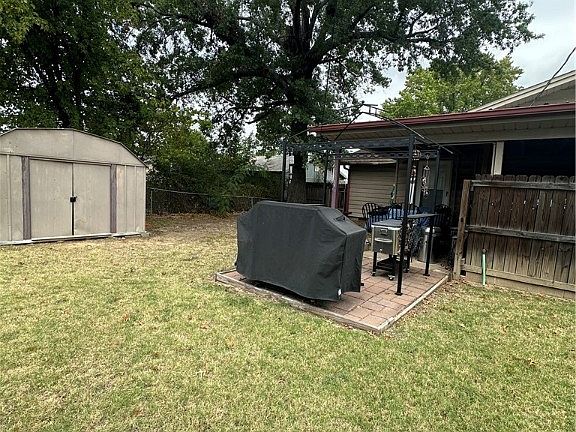 This exquisite three-bedroom, two-bathroom home features an eat-in kitchen and a dining room that can also serve as a second living area. The laundry room has a separate entrance and includes a sink that is spacious enough to function as a pantry with ample storage. The home has been freshly painted and features upgraded lighting, recently renovated bathrooms, and new flooring. All appliances are included, with a brand-new refrigerator. The home is move-in ready, inviting its new owners to begin their story. Ideally situated near schools and shopping centers, it boasts a fully privacy-fenced backyard with a covered patio, ideal for hosting family and friends. The property includes abundant parking and a shed for additional storage.