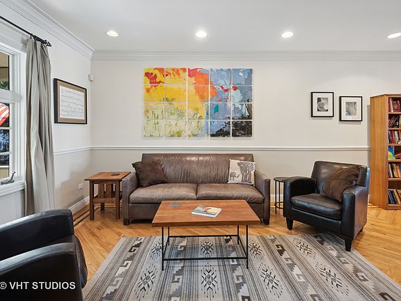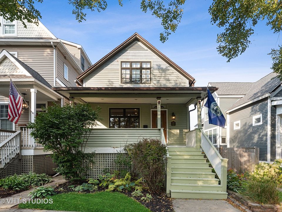 Bright and completely updated two-story farmhouse near town, trains, shopping, dining, University and lakefront. High ceilings throughout with hardwood floors, inlaid mahogany accents, deep moldings and a great floor plan with an office on the main floor. Sunny south-west kitchen overlooks a pretty yard and features maple cabinetry, granite counters & newer stainless appliances. Three nice-sized bedrooms on the second floor all with high ceilings, include a master suite with a walk-in closet, and full bath with jetted tub, plus a hall stackable washer and dryer. The mostly finished basement is on grade, with great natural light, and is a very comfortable space, newly insulated and waterproofed '19, with a family room and gas fireplace, large sitting room/home office, good storage in the utility room. Newer windows. Step out to enjoy an oasis of your own with a paver patio, pergola, home sauna, fenced yard and two car garage currently used for exercise with a rock climbing wall and large loft for additional storage Tear-off roof 2010 and HVAC '12 plus new split system AC wall units added on the second floor for auxillary cooling as needed. Water heater 2014.