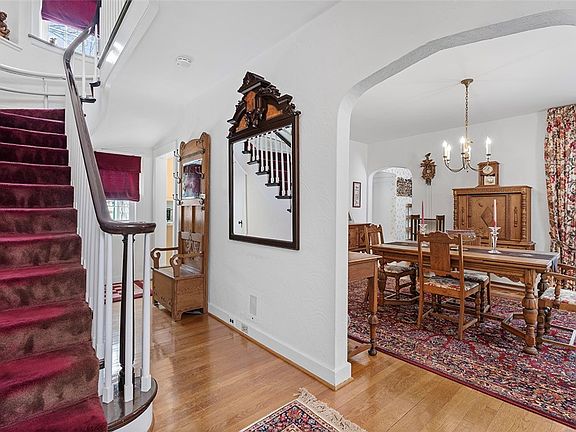 Upon entering, you are greeted by a spacious, elegant entryway with a curved staircase, hardwood floors and charming architectural details. The expansive windows throughout the home flood the interior with abundant natural light. The living room showcases a stunning, focal-point fireplace, accentuating the home's refined aesthetic. The dining room provides a spacious formal setting for gatherings. The kitchen is a true chef's haven, featuring ample cabinetry and a spacious layout that seamlessly integrates with the overall flow of the home. The breakfast nook is located just off the kitchen and is perfect for your morning cup of joe. Upstairs, the primary bedroom is a true retreat, boasting a spacious design and an en-suite bath. The striking exterior and scenic surroundings provide ample opportunities for outdoor enjoyment and relaxation. This home is an ideal setting for those seeking a blend of timeless elegance and modern convenience, nestled within a picturesque landscape.