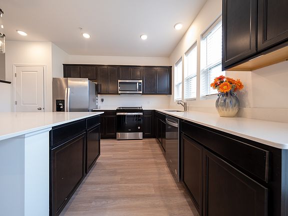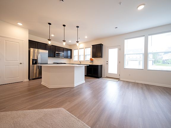 Looking for a modern townhome in Corcoran? Well, look no further! The main level has a large open concept connecting the family room, dining room, and kitchen, perfect for entertaining. The kitchen offers beautiful countertops, stainless steel appliances, and dark cabinets, which contrast perfectly with the counters. The large center island is perfect for prepping food or entertaining guests, and it acts as the center stage of the entire room. There is a large family room with recessed lighting and carpet flooring, which then flows into the dining area with large windows. There is also a patio door that walks right out to your private patio space and ample greenspace too! The upper level has three bedrooms, two bathrooms, and a laundry room. All bedrooms are good size, but best yet is that they all have great closet space as well. The master bedroom offers plenty of windows for natural light, as well as a gorgeous bathroom and two large closets. Washer and dryer are located on the upper level as well, making doing laundry a breeze. Two other good-sized rooms and a full bathroom are found upstairs. You won't want to miss this fantastic home!