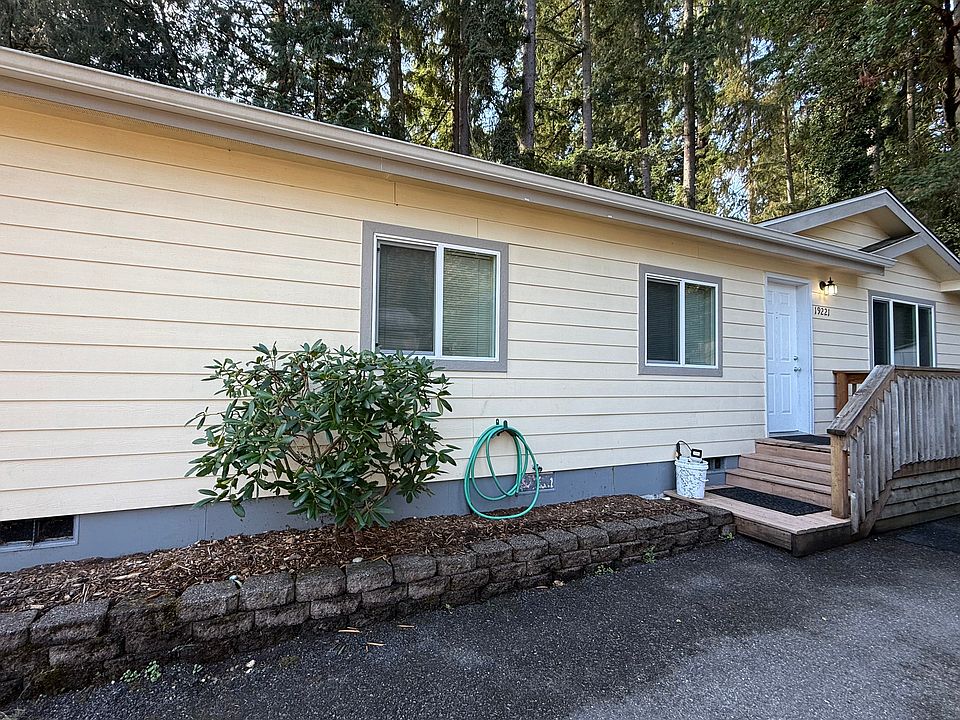 Quiet Shoreline neighborhood home for rent. Three bedrooms with one large master bedroom and bath attached, and a large soaking bathtub adds the perfect special touch. Two standard additional bedrooms with large closet spaces. Backyard green belt for lots of open air and roaming of dog if desired. Tucked well within the Shoreline School District and close to I-5 and the light rail. Extra shed space provided in backyard. Laundry and washing room with additional cabinets for storage. Beautiful hardwood floors in huge northwest living room- with open vaulted ceilings throughout. Kitchen includes stainless steel refrigerator and dishwasher. Dining area is off of kitchen with room for large table. Kitchen and dining area with nice tile work. House is clean and well kept.