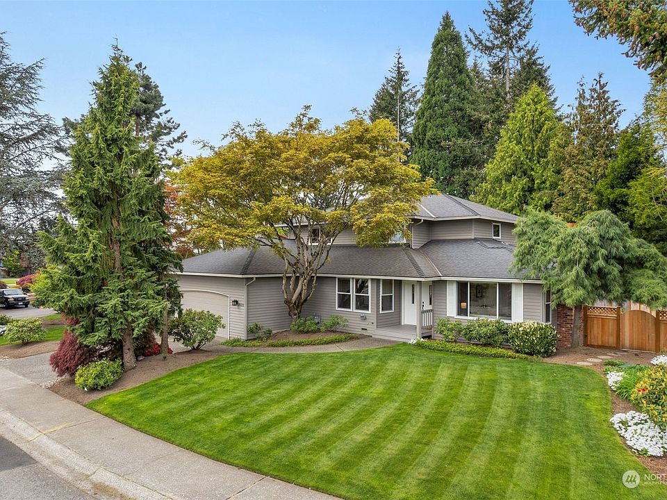 Enjoy the tranquility of this Northshore Summit home in Kenmore. From the moment you step inside, the pride of ownership is evident throughout. This beautiful home features two spacious living rooms complete w/ cozy fireplaces, a dedicated dining room, and an updated kitchen that opens to the stunning backyard. A bedroom, laundry room & bath round out the main floor. Upstairs, you'll find two spacious bedrooms, a full bath & large primary en-suite. Spend the summer soaking up the sun on the back patio, ideal for entertaining or simply enjoying the beautiful surroundings. With an oversized 2-car garage w/ electric car charger, you'll have all the storage space you need. Located in Northshore school district & moments from Lake Washington.
