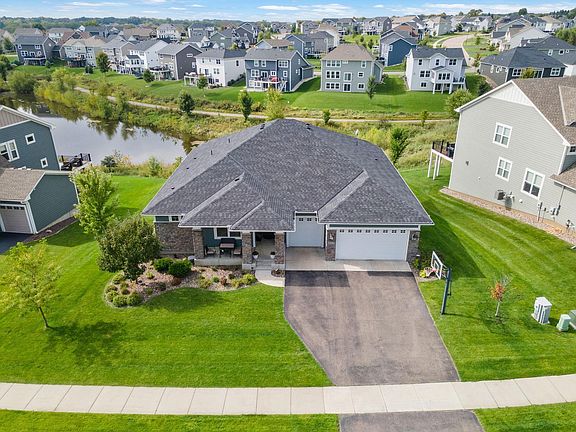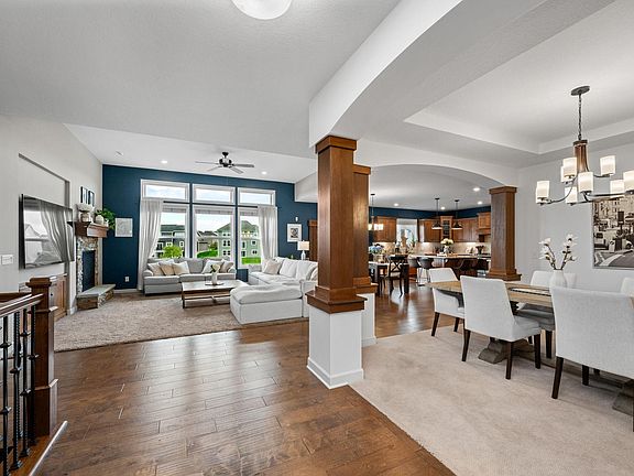 The fully finished lower level is an entertainer’s dream, boasting a custom wet bar with quartz countertops and stainless steel appliances that overlook the expansive family room with a beautiful stone fireplace. Large windows and a sliding patio door flood the space with natural light, creating a warm and inviting atmosphere. The basement also features three additional bedrooms and two bathrooms, a large flex room, and abundant storage.