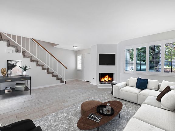 This is the updated, freshly painted, move-in-ready, 3 bedroom, 2.5 bath townhome you have been waiting for! No need to lift a finger, there are already brand new dual pane windows throughout, new light fixtures and outlets, a new kitchen countertop, a new stove and microwave, and a new water heater. The spacious living room has a cozy fireplace, there is a formal dining room that is open to the kitchen and has direct access to the patio, and the large primary bedroom has extra high ceilings, a walk-in closet and an en-suite bath. There is also a private 2-car garage which includes the washer and dryer. The unit is tucked within the beautiful grounds of this well maintained complex and the HOA includes a large swimming pool, spa, water, trash, internet, earthquake insurance and ample guest parking. These townhomes rarely come on the market, don't miss your opportunity!