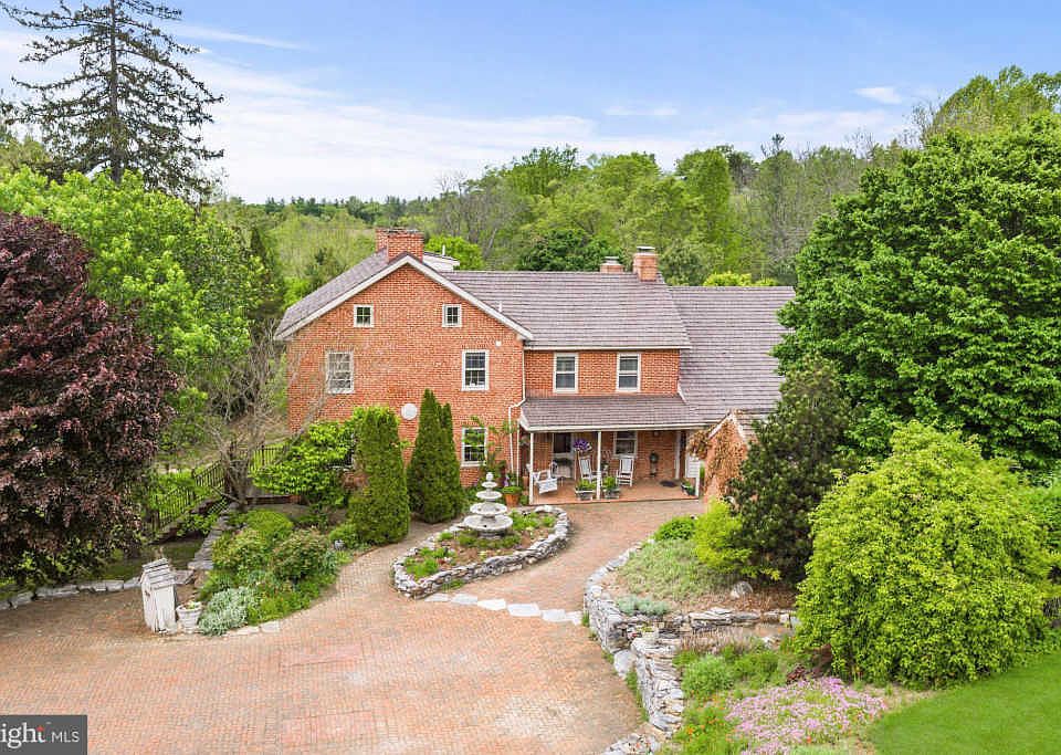 Exquisite 68 acre estate w/6 BR, 6.5 BA, 7 FP, dramatic 2-story great room w/vaulted ceiling. Historic structure w/all modern amenities. Guest house w/3 BR, 3 BA, swimming pool. Gorgeous gardens, ponds, fountain, spring house, gazebo. Grand entrance w/iron gates. Outdoor riding ring, stable w/15 stall, 8 paddocks, auto-waterers, bank barn. 3+ miles of scenic wooded trails