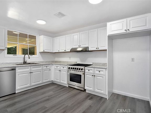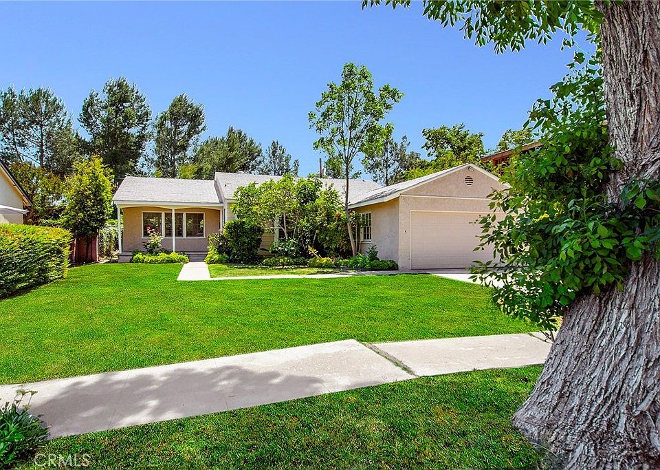 This superb single-level is all dressed up & ready to roll. Fresh paint, beautiful newer flooring, newer window treatments & a dazzling kitchen are all yours to enjoy. Unique rear bedroom is the size of two offering a multitude of possibilities...home office, gym, studio, nursery or more!! Floor to ceiling windows in the living room allow warm natural light to shine. Private rear grassy yard with large covered patio and tranquil relaxation area is ideal....don't miss!