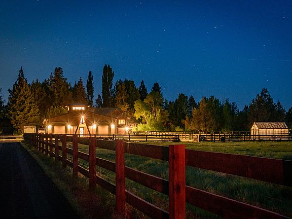 Highly sought after location between up & coming Tumalo & Sisters, just minutes from Bend. This property features a charming 3,449 sf Chalet-style home with 3 bedrooms, 3 baths & a den, perfect for those who love Central Oregon's rustic charm. The home boasts a large A-frame living room with a modern/large wood-burning stove & picturesque views of the pond & mountain views from the open loft. The home was fully updated in 1999 with hardwood floors throughout, granite countertops, cherry cabinets & a spacious primary suite with vaulted ceilings & a large soaking tub. Recent upgrades include a paved driveway, high-end Kentucky black 3 rail fence, 7 acres of inground irrigation & a large 2nd story deck looking out to the pond. This private & quiet property, located on the edge of BLM, offers park-like pasture & is ideal for anyone who loves the outdoors, with miles of BLM horse & hiking trails adjacent to the property. The property includes a 4-stall barn, large shop & custom greenhouse.