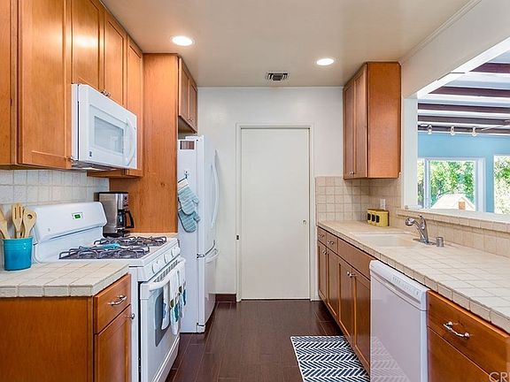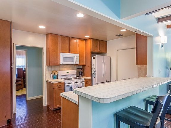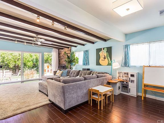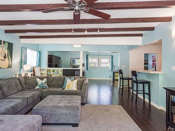 Excellent home with open living area and tons of upgrades. Entry flows to large family room / living room / great room and open kitchen. Master bedroom features ensuite bathroom with Calacatta marble and double sinks. Features include copper plumbing throughout, cozy fireplace, open-beam ceiling, and tranquil backyard with covered patio, misting system, orange and grapefruit trees, and plenty of grass. Upgrades include remodeled kitchen with designer tile counters and soft-close cabinets, custom stone tile work in both bathrooms, trendy wood-look tile floors, tankless water heater, newer insulation, designer touches, and more. All this in a fantastic residential neighborhood with close proximity to shopping, orange line bike and bus path, and 101 freeway.