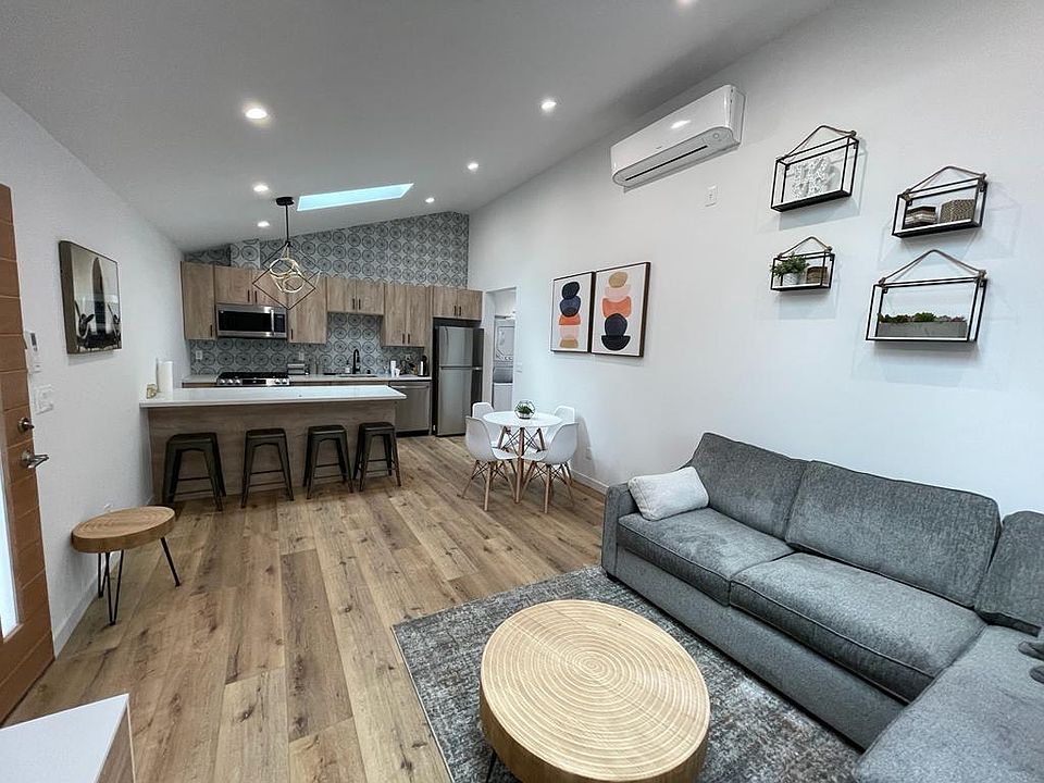Modern, bright, and brand new 1 bedroom 1 bath large ADU. First time for lease, with brand new appliances, including in-unit washer and dryer. This stylish home can be rented fully furnished. Small privet back yard, walking distance to shops and restaurants, minutes from the 101 freeway. One year lease. Renter to pay for utilities. No smoking. Street parking. Small pets will be considered.