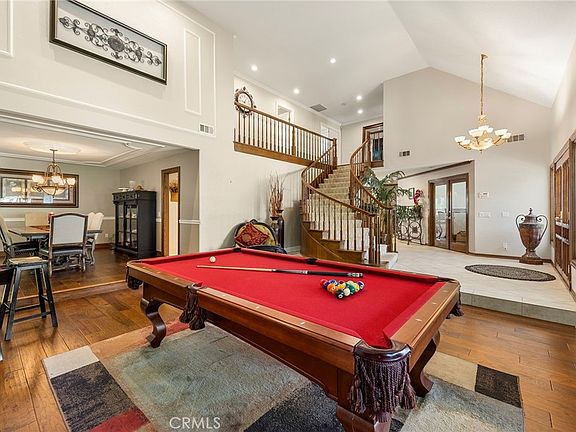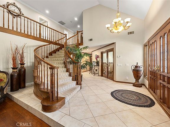 Peace and tranquility awaits you on one of Yorba Linda’s most desirable streets! This beautifully upgraded home is designed to impress. The property welcomes you with expansive lawns and a winding path that leads to a double-door entrance. Step inside to the light and bright entry with vaulted ceilings and a graceful staircase, opening up to spacious formal living and dining areas. The gourmet kitchen is a chef's delight, boasting custom cabinetry, large center island with pendant lighting, a double oven Wolf range with vent hood, refrigerator, wine fridge and warming drawer. The generous family room with cozy fireplace, overlooks the picturesque backyard, while a wet bar and casual breakfast nook make for the perfect entertaining space. The main floor also offers a private bedroom with built-ins and en-suite bathroom, powder room and an oversized laundry area. Upstairs, the luxurious primary suite includes an elegant fireplace, French doors that open to a private balcony with scenic views, walk-in closet with organizers and a stunning bathroom featuring custom shaker cabinets, dual vanities, an oversized multi-head steam shower, and a lavish air-jet tub. Three additional bedrooms, a spacious full bath, and a Jack-and-Jill bathroom complete the upper level. The entertainer’s backyard is a true retreat, offering a covered patio area for al fresco dining, built-in BBQ, sparkling pool and spa with waterfalls, firepit and a gazebo, all in a serene, private setting that overlooks Jessamyn West Park. Three-car garage, ample parking, and storage rounds out this must-see home. Conveniently located just minutes away from Black Gold Golf Course, Yorba Linda Country Club, award-winning schools, parks, hiking and biking trails, dining and entertainment.