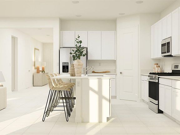 This new single-level home features a convenient bedroom and full bathroom off the foyer, leading to a versatile flex space ready to be used to meet the evolving needs of the home. The inviting open-concept layout is designed for seamless entertaining and multitasking, complete with access to an outdoor lanai. Three bedrooms are tucked away to the side of the home, including the luxe owner's suite in a private back corner, offering direct access to a spa-inspired bathroom and walk-in closet.Prices, dimensions and features may vary and are subject to change. Photos are for illustrative purposes only.