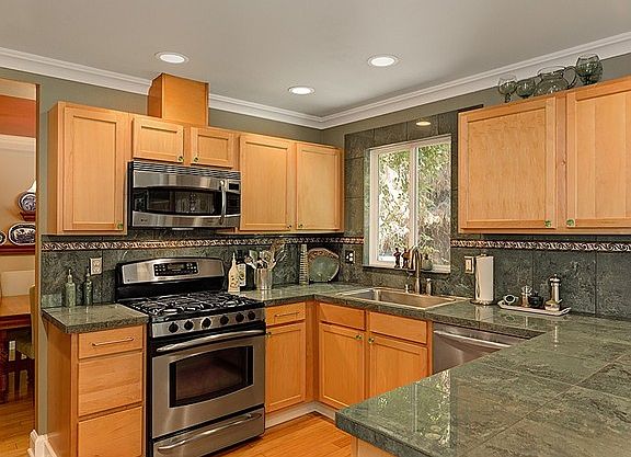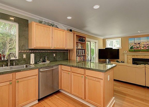 Dramatic vaulted ceilings & gleaming bamboo floors greet you in this impeccably maintained 4bd/2.25ba home. Features open layout w/family rm off kitchen, formal living rm, gas f/p & beautifully updated baths. Open kitchen w/gas, stainless appliances, granite counters, pantry & eating bar. Large master suite w/walk-in closet & 5 piece bath. Escape to your private fully fenced backyard oasis! Peaceful retreat includes deck, patio, pear & fig trees, hot tub & raised planting bed. Huge 3 car garage!