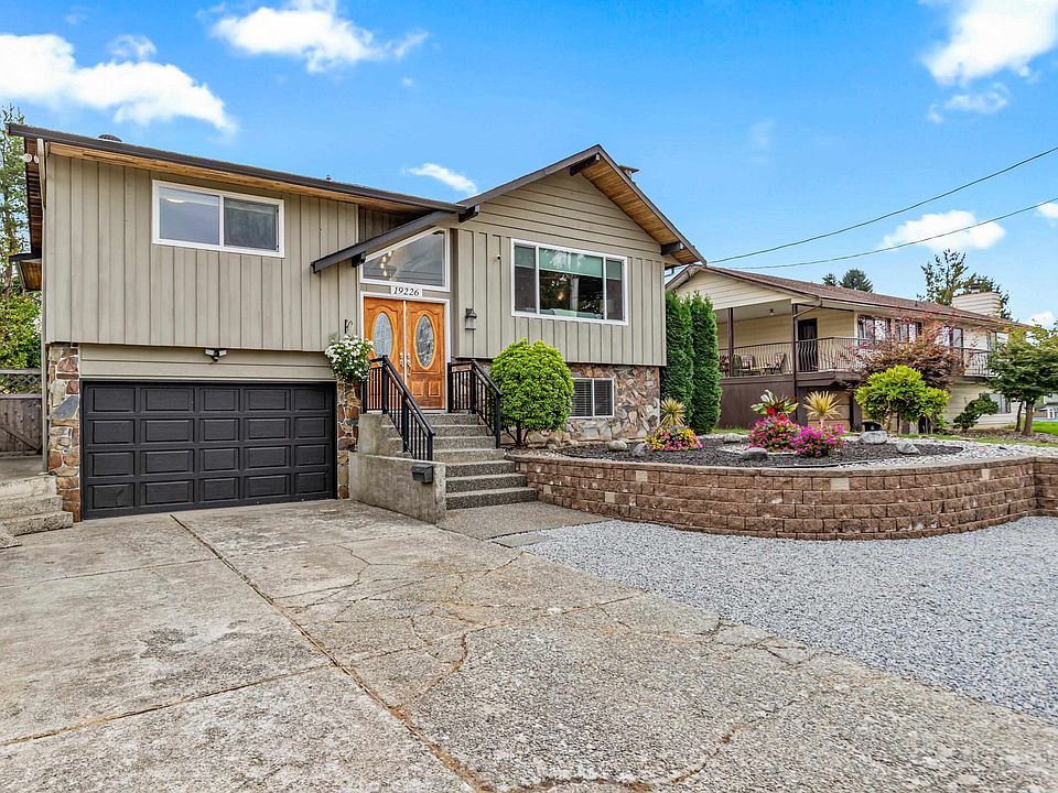 Presenting this stunningly updated 5-bedrm, 3-bathrm Pitt Meadows home, designed with both comfort & functionality. The bright 2-bedrm walk-out suite is ideal for multigenerational living or mortgage helper, offering privacy & flexibility. The main floor features a renovated open-concept layout with a gas F/P, a spacious dining area, a chef-inspired kitchen, with a generous island, wine fridge, gas range, A/C & abundant of custom cabinetry. A sunlit flex rm/den provides the perfect space for a home office/hobby rm & opens onto a large deck with a B/I hot tub, ideal spot to relax & enjoy the outdoors. The primary boasts a W/I closet & 3-P/C ensuite, complemented by 2 additional well-sized bedrms. Outside you will find a low maintenance 6880sqft fully fenced yard with a 197sq ft garden shed