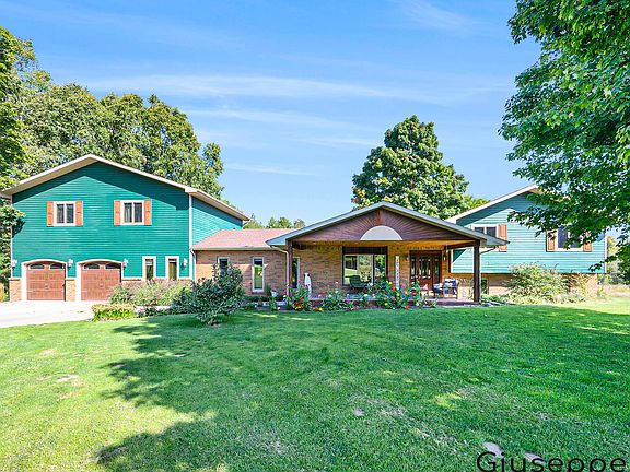 Spectacular, immaculate custom home happily located on over 17 acres of gentle land, for peace, relax and any of your hobbies. House features 6 bedrooms and 4 baths, a large custom-built high-end kitchen with granite countertops for your gatherings, and a living room complemented by a stately, custom-built gas fireplace, with views both of the front lawn and the expansive deck and backyard. It does not end here. A movie theatre room with high quality tech, a flexible space with another kitchen for gatherings or in-law-suite possibilities are located on the second floor, together with two of the bedrooms, and a full bath. The generous main bedroom and main bath enjoy a walkout and a custom stone and limestone wood fireplace for your cozy winters. An additional three bedrooms and one bath are situated on the bilevel end of the home. This excellently maintained property is complemented by two outbuildings, a dog kennel, and a long list of updates! Your paradise is move-in ready!