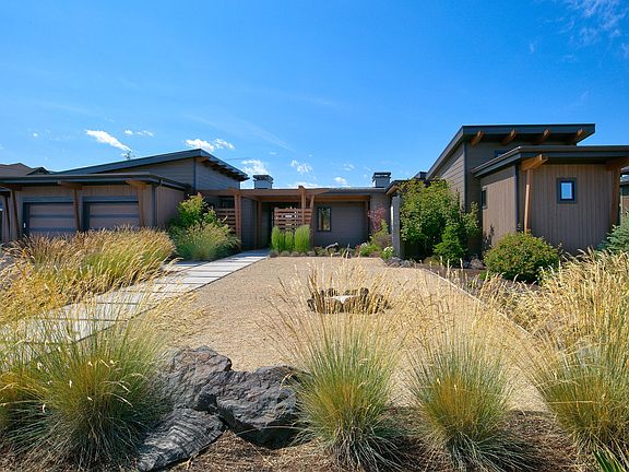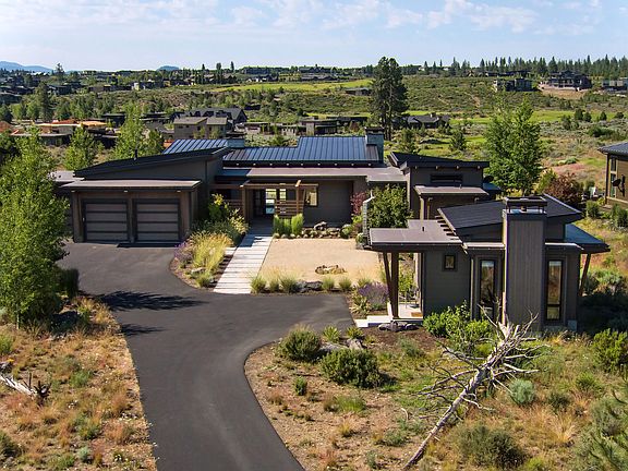 Take in the incredible mountain views and luxury resort living in this single-level modern home in Bend! With a spacious, open floor plan and natural light throughout, the contemporary design and impressive finishes, including white oak floors, exposed beams, Board form concrete walls & wood burning fireplace, hold both a peaceful sanctuary feel as well as perfect gathering spaces. The gorgeous primary suite is complete with access to the covered patio with expansive views and outdoor gas fireplace. On the opposite wing, the additional bedrooms, all with en suites, will offer all of the overnight quiet and privacy desired. Large office in the main home and the added detached casita are ideal remote workspaces, home dens, or studies. Low maintenance landscaping surround this gorgeous house located in the gated cul de sac community in Tetherow that borders the Deschutes National Forest, with perfect indoor and outdoor areas for your Central Oregon living experience at its very finest
