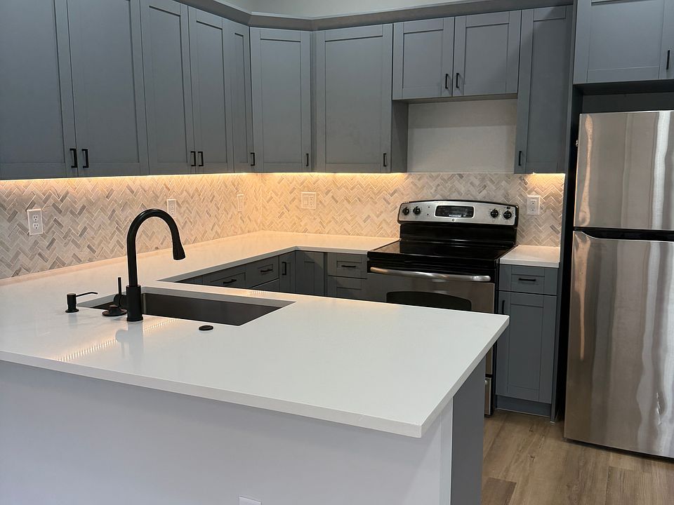 No carpets featuring modern bathrooms and a contemporary kitchen. Move-in ready by September 15th!