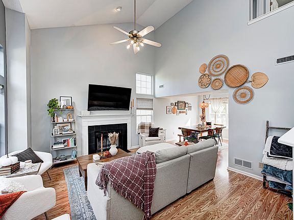 Cozy wood-burning fireplaceStylish decorAttractive curb appealSpacious primary suiteFirepit lounge areaVaulted ceilingsAbundant natural light