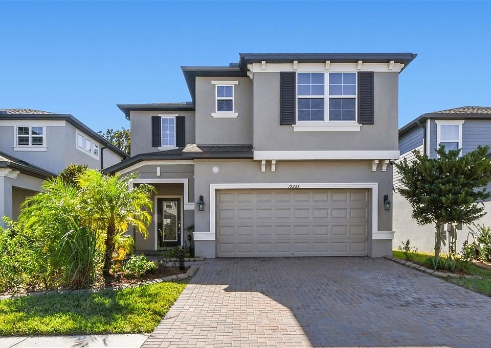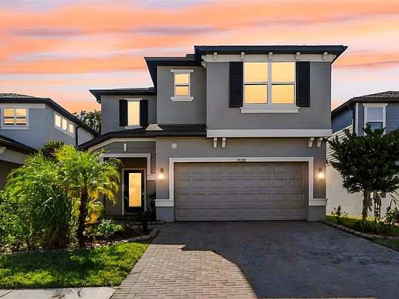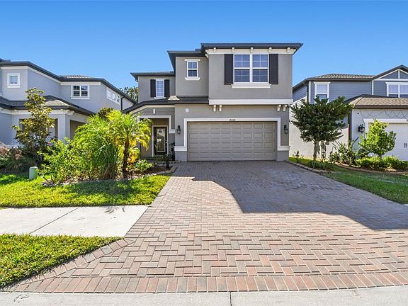 PRICE REDUCTION!! Welcome to this beautiful, modern home in the highly sought after neighborhood of K-Bar Ranch II! This 2,641 square foot home was designed with modern features and offers a blend of both luxury and convenience. This home features 4 bedrooms and 3 full bathrooms, upstairs loft, an oversized extended screened lanai, and the interior is freshly painted. This property is highlighted with top-of-the-line selections, including upgraded cabinetry, stone countertops, luxury vinyl flooring on the main level, and plush carpeting in the bedrooms. The first floor features an open foyer with views of the grand staircase, a first floor bedroom that could also be used as an office or den, and a full bathroom. The heart of the home features an open concept kitchen, dining, and living room combination with plenty of room to entertain guests. Making your way up the grand staircase, you will find the primary bedroom with an oversized walk-in closet and large en-suite bathroom. Also located upstairs is an open loft, two additional bedrooms, a full bathroom and laundry room. Once outside, escape to your own private oasis complete with an extended screened-in patio with a solid rooftop and conservation views. The outdoors are enjoyed year-round with the shade and space provided in the enclosed patio. This home also features a 2 car garage that is fitted with an electric car charger. This property is located in close proximity to major roadways, shopping, restaurants, medical facilities and is zoned for excellent schools. Schedule a showing and don't miss an opportunity to view this wonderful home!