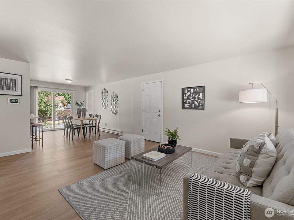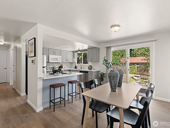 Charming updated rambler featuring 3 bedrooms plus an office with closet and 1.75 baths. Recent upgrades include new vinyl flooring, fresh interior paint, remodeled kitchen with new cabinets, countertops, and appliances, as well as updated bathrooms. A sliding door opens to the fully fenced backyard, perfect for outdoor enjoyment. Spacious living and dining areas provide excellent flow for daily living and entertaining. Large two-car garage. Set on a generous private lot in the desirable Northshore School District, just steps from the North Creek bike and walking trail.