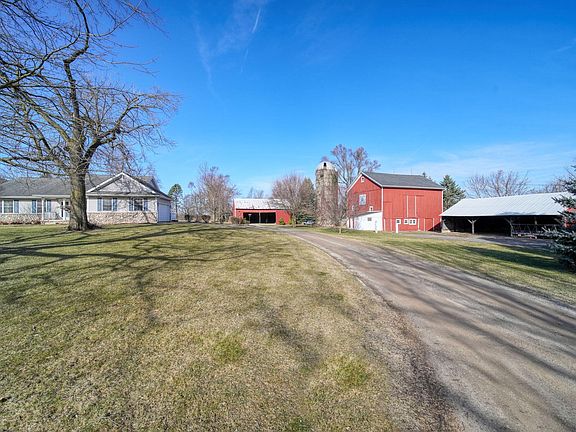 Gorgeous 4 bedroom, 3 bath ranch home on 10 acres with 3 barns, including a large pole barn with a concrete floor. Very clean and well-maintained home, with many great features throughout. Spacious kitchen and living room with vaulted ceiling. Formal Dining room. Main floor laundry, connected to the attached 2 car garage. 3 main floor bedrooms, including the beautiful primary suite with vaulted ceiling, walk in closed and full spacious master bath with walk in shower and an extra-large soaking tub. Tons of potential in this partially finished basement with high ceilings, with a 4th bedroom and connected full bathroom and plenty of additional finished space for an extra living room or potentially a 5th bedroom. Back up GENERATOR. High Speed fiber internet available.
