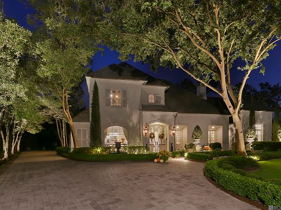 Professionally renovated and eloquently styled! Every inch of this remarkable modern French home has been thoughtfully enhanced, replaced, or redesigned since its purchase. The reconfigured floor plan includes a dramatic 20’ foyer and redesigned iron staircase. The living room and solarium join effortlessly overlooking the peaceful resort style backyard with a sleek 40’ gunite lap pool with silver travertine decking, an 8-seat hot tub, remote, controlled lighting and fountain system. The dining room enclosed in serene wallpaper leads to a butler’s pantry which joins the chef’s kitchen. The kitchen was fully rebuilt with an oversized island, Italian gas range, and quartz countertops. The primary suite overlooks the pool and magnificent gardens, offering a large sitting area with a fireplace, luxurious bath with double dressing areas, pass-through shower, and jetted tub. The 5th versatile bedroom is ideal for a library/sitting area. The office is also a versatile space for a media /game room. Other amenities include (see attached full amenity list): upstairs library/bonus room, custom plantation shutters, custom draperies, wallpaper and mirrored feature walls, antique architectural salvage doors, newer garage doors and motors, cobblestone driveway, and a whole house generator. Extensive European landscaping, with professional lighting throughout the grounds, includes mature, live oaks, Italian cypress, camellias, and crepe myrtles creating a park like setting with multiple crushed stone patios, a play yard, and exterior sound system. Every system has been maintained or upgraded – HVAC, water heaters, plumbing, lighting, drainage, and security. Nestled on a quiet cul-de-sac, adjacent to golf course lake/with lounge chairs (lake access via adjacent CCLA, common ground). This home has exceptional craftsmanship and design!