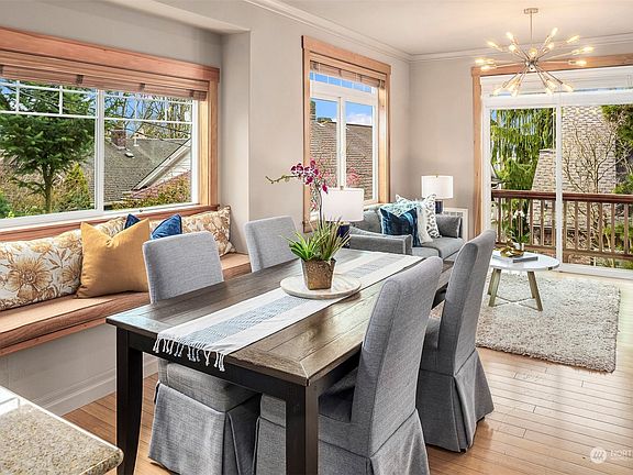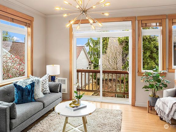 Light-filled Queen Anne gem w/breathtaking west views & rare TWO PARKING spaces! Charming NW contemporary craftsman w/3 BR & 4 separate baths, high ceilings, an abundance of windows, bamboo floors & warm, natural wood cabinets, doors & trim. Cozy main w/gas fireplace, powder room & deck plus gourmet kitchen w/granite counters, new SS gas stove, microwave & fridge. Upper w/full size WD, Primary Ensuite w/deck overlooking Elliott Bay & 2nd bed w/full bath. Lower w/guest suite/ofc/media rm & full bath, PLUS bonus storage area - opens to private, fully fenced backyard. Fabulously located on quiet, dead-end alley w/cafes around the corner, blocks from Q/A Hill & Interbay, easy downtown access. *Move-in ready single-fam home = no HOA dues*