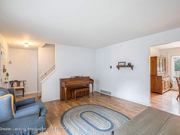 The main level features a bedroom, spacious living room, formal dining area, kitchen with an eat-in space, half bath, step-down family room, and a generous 3-seasons room. Upstairs, you'll find the original hardwood floors along with three additional bedrooms and a full bath. The lower level includes laundry, storage, and a finished rec room for extra living space. Enjoy the outdoors with a fenced-in backyard, two decks, and an attached 2-car garage. This is a rare opportunity to own a long-loved home in a wonderful community.