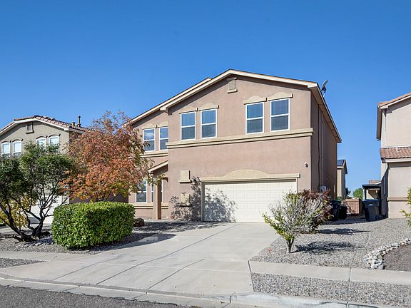 This beautiful open and bright home hosts tons of upgrades including refrigerated air, custom wood and tile floors throughout, stainless steel appliances, washer/dryer included, and large open kitchen. Best upgrade of all is the solar panels included at no extra cost, with monthly savings around $150 per month!! As you walk through the front door you are greeted by the formal dining area which can also be used an office space, from there you enter into the extra big living room space with tons of windows, opens to the kitchen with tons of cabinet and counter space making it perfect for the chef and an eat in kitchen space for another dining area. Upstairs you are greeted by a second living area/multipurpose room, from there you enter the primary suite which hosts double sinks, large walk in closet and plenty of bedroom space. From there you walk to three more good sized bedrooms, some with carpet, and large closets with a main hall bathroom with double sinks. The back yard hosts a custom bar top with grill and large covered patio. Tons of space for entertaining and relaxing. This home is located in the highly desired Cabezon community that includes parks and running paths. Centrally located closet to shopping, schools, grocery, restaurants, this is a must see that will go fast! Tenant pays for all utilities. Minimum one year lease. Pets considered with owner approval.