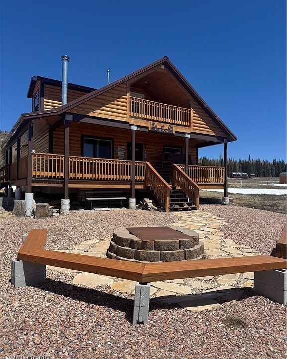 This beautiful log cabin is located in Brian Head Utah and features two bedrooms, one and half bathrooms, a full kitchen, a wood burning stove, a shed, space to park your RV and a beautiful deck to enjoy the wide open beauty of the area, star gazing and fishing nearby. The water storage tank and furniture are included. The water comes from a community well and st6ored in the tank. There is a water association of $125 per year that provides the water and maintains the roads during the warm months. Power is solar.