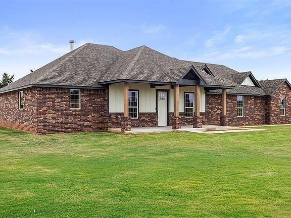 2,050 sqft new construction home sitting on a large 0.90-acre lot in the new Valley Ranch addition in Blanchard, OK. Come be one of the first to join this growing community! Just 3 miles from Blanchard Schools, this HERS-rated home offers 3 bedrooms + office with closet space (could be used as 4th bedroom), 2½ baths, & a 3-car garage. The stove, HVAC system, and fireplace are all plumbed for propane. Option to convert if you desire. Kitchen features quartz countertops, a large island with farm sink, stainless steel appliances, and a walk-in pantry. The spacious master suite includes a freestanding soaker tub, walk-in shower, dual vanities, privacy toilet, and a walk-in closet. Bathrooms boast granite counters and stylish tilework. 2nd and 3rd bed are a jack and jill plan with full bath. Large utility room off the garage with Mud bench, folding area, cabinets, and 1/2 bath. Additional features include large windows flooding the home with natural light, and wood-look tile throughout the main areas, black fixtures throughout, Ethernet wiring, & alarm system. The exterior includes 7,500± sq ft of fresh sod & a covered patio. Addition has paved roads and a community pond! Metal shops allowed! Blanchard schools. ?2 miles to downtown Blanchard. Grady County.