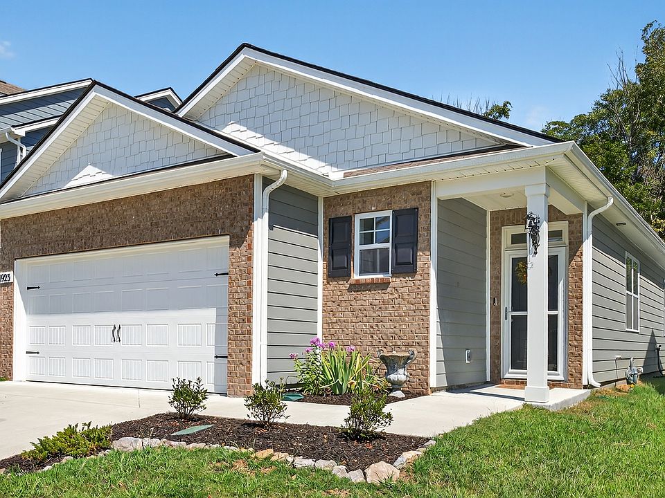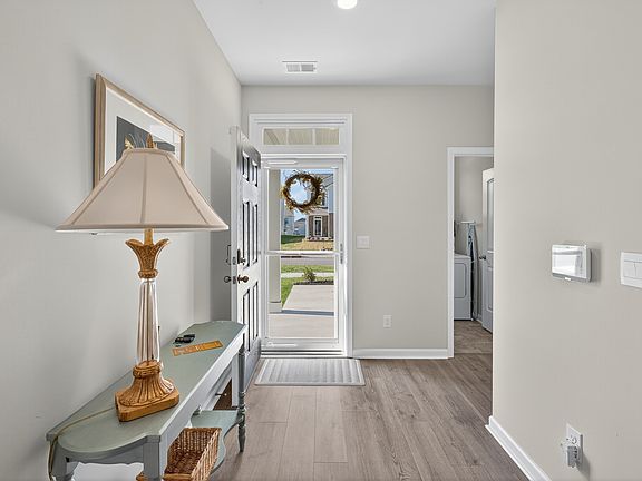 Tucked against a peaceful treeline, this like-new, single-level cottage feels instantly welcoming. Step inside to find a bright, open layout with quartz countertops, stainless steel appliances, and easy-care LVP flooring. Soft recessed lighting and 9’ ceilings create an inviting feel, while a decorative sliding door leads you to the covered back patio—just right for morning coffee or evening conversations. A dedicated laundry room adds convenience, and the vinyl-fenced backyard offers privacy and a perfect space to unwind. From its charming shaker shingle accents to its thoughtful finishes, this home is ready for you to start your next chapter.