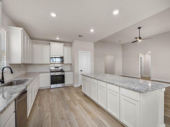 The Leland plan by LGI Homes is a spacious 4-bedroom home with 2 bathrooms, a formal dining room, a chef-ready kitchen, beautiful granite countertops and much more. The Leland plan displays the designer features of our CompleteHome Plus package. Upgrades in the home include luxury vinyl plank flooring, ceiling fans, a refrigerator with in-door ice makers and 42” upper wood cabinetry.