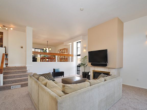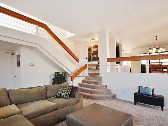 Located in the desirable Jefferson Elementary area, this end unit 3 bedroom, 2.5 bath townhouse has over 2000 square feet of open living space, an additional bonus room, and features a community pool and spa. The light-filled living room features high ceilings, beautiful walnut hardwood floors, stone fireplace and a private patio through the sliding glass doors. Access to the 2-car garage and bonus area is right off of the foyer. The completely remodeled kitchen, dining and wet-bar area is just up the steps, along with a balcony overlooking the pool. The kitchen features new appliances, white shaker cabinets with under-cabinet lighting, large island, and a built-in workspace. Up the stairs is a large landing area with floor-to-ceiling windows overlooking the neighborhood. The second floor has the master suite and 2 other spacious bedrooms, with brand new carpeting and newly installed double-pane windows. The master suite boasts his and her closets and a remodeled bathroom with modern quartz countertops, two sinks, and shower with custom bench and rainfall shower head. The second upstairs bathroom mimics the master in its remodeled design. The additional 225 SF bonus room can be used as a home gym, play area, or mancave and includes designated storage. Other new additions include LED lighting, heater, and plumbing throughout. The convenient location provides walking access to many nearby parks; enjoy the space and outdoor amenities this townhome offers just in time for summer!