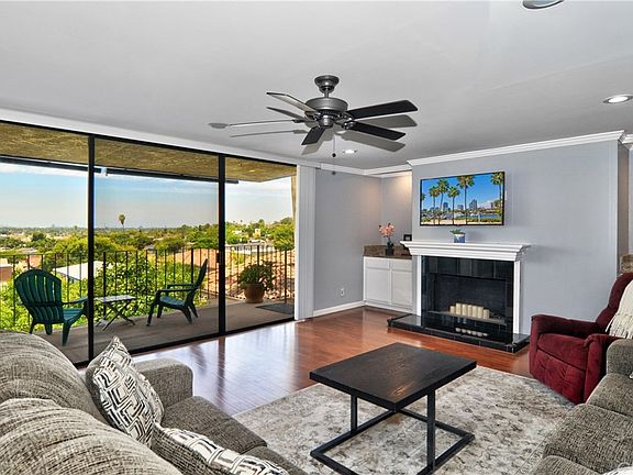 Enjoy Panoramic Views from this beautifully remodeled and spacious Luxury Condominium. The single level private location enjoys 180 degree views toward the Coastline, including Catalina Island, the Harbor, Queen Mary, Palos Verdes, Signal Hill and downtown Long Beach. The home features a gourmet kitchen with granite counter tops and dining/office nook, remodeled contemporary bathrooms, formal dining room, great room with custom gas fireplace, two spacious bedrooms, luxury wood laminate and tile floors, nearly new A/C and heater, and a laundry area. There is a secure gated entry into the professionally landscaped complex, and a private porch entry leading to the unit faces the tropical tree and plant filled atrium. Two subterranean parking spots are included, with ample and convenient parking for guests on the tranquil tree lined street. In addition, there is easy elevator access from building entrance (1st floor) to subterranean garage, for easy stair-free access. Water and trash and are included with association dues. This is a gem of a home that you must see. The spectacular sunsets and city lights views at night will take your breath away!