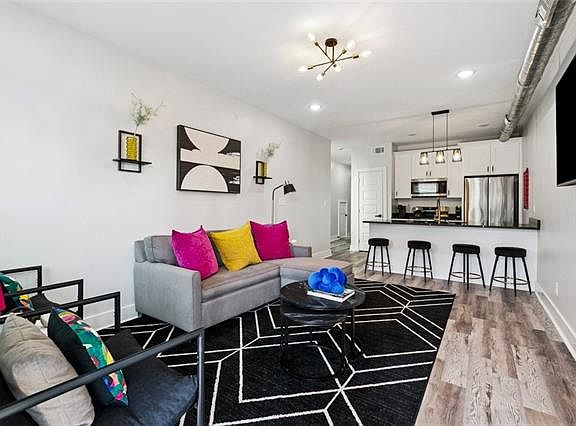 Open-concept livingQuiet study spaceQuiet comfortStainless appliancesQuiet single-level flowIn-unit laundryModern kitchen