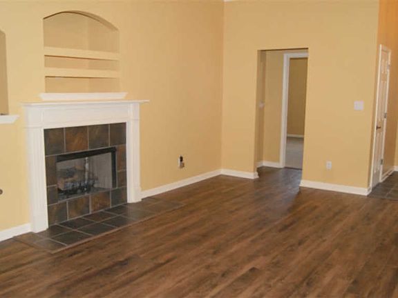 Enjoy the beautiful lakes in this gated community, low county only taxes also! Open and light / airy floor plan. Wood Floors in spacious Great Room -tall ceilings, plant ledges, crown molding, gas fireplace with slate enclosure (also slate at front foyer). Stainless appliances and center work island and breakbar in eat in kitchen (tile flooring). Separate Laundry Rm. Built in Desk/Computer Station, Security System and Split BRs. Master Retreat has Luxury Master with Coffee/Wine Bar Blt In!!