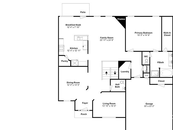 Cozy fireplacePatio areaOpen floorplanStainless steel appliancesBreakfast nookWalk in closetGranite countertops