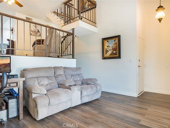 Welcome to this lovely townhome nestled in a charming community with lush green landscape surrounding an inviting living space. As you step inside, you are greeted by a warm and inviting living room adorned with plantation shutters that seamlessly flow into a good size patio, perfect for relaxing or entertaining. The home boasts high ceilings, creating an open and airy feel, with a second living room/family room that connects to a dining room for formal gatherings while opening up to a bright kitchen featuring a breakfast bar ideal for casual dining with barstools. Throughout the home, you'll find lovely laminate flooring and ceiling fans are thoughtfully featured in the bedrooms, ensuring comfort all year round. Retreat to the primary bedroom offering dual sinks, a sizable walk-in closet, and a lovely dual sink primary en-suite bath for added convenience and relaxation. Outside, enjoy the community's pool and spa, perfect for unwinding after enjoying the comfort of this inviting townhome. Don't miss the chance to make this charming property your new home sweet home! Addition features include ample guest parking and a direct access two car garage.