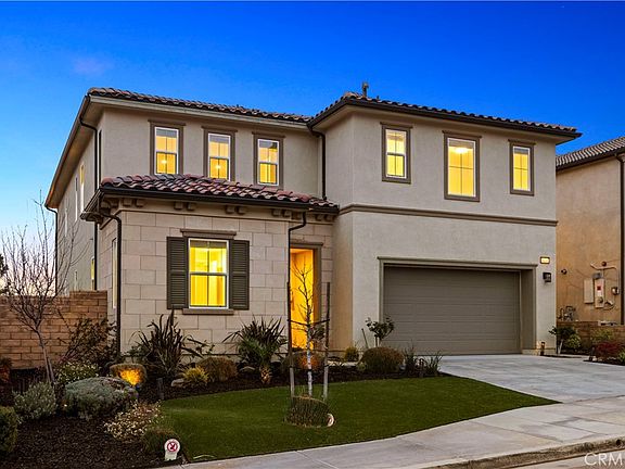 Boasting amazing panoramic views, this stunning 5-bedroom, 4-bathroom newer construction home in Plum Canyon was built by Toll Brothers and features the highly sought-after Ancona model floor plan with No Mello-Roos! Showcasing a modern Mediterranean-style facade, elegant curb appeal, and thoughtful landscaping with artificial grass, this home is designed for both comfort and style. Inside, the open-concept layout seamlessly connects the expansive kitchen—featuring quartz countertops, a massive island with seating, a built-in range with range hood, an electric oven with microwave, and a large walk-in pantry—to the inviting living room. A large slider opens to the enclosed "California room," creating an effortless indoor-outdoor living experience. The main level also includes a bedroom with a full bath, perfect for guests or multi-generational living. Upstairs, a spacious loft, three guest bedrooms (one with an ensuite), an additional guest bath, and a convenient laundry room with sink add to the home’s functionality. The luxurious primary suite is a true retreat, complete with abundant natural light, a private balcony, and breathtaking views of Plum Canyon. The expansive backyard, designed with artificial grass and lush landscaping, offers plenty of room for a pool and outdoor entertaining. Additional features include a whole-house water filtration system, a two-car garage with a plug for an EV charger, a tankless water heater, and access to HOA amenities, including a pool, spa, and nearby parks. Ideally located near award-winning schools, shopping, dining, and the 5 & 14 freeways for easy commuting, this home is the perfect blend of luxury and convenience