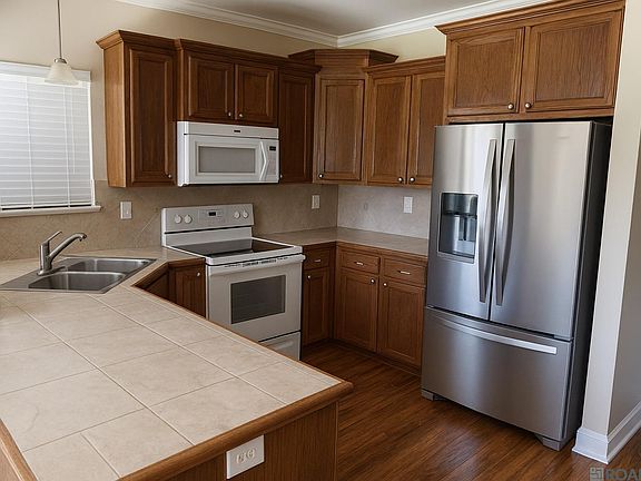 Beautiful Home in a Prime Location! You’ll fall in love with this charming 3-bedroom, 2-bath home featuring an open floor plan and sitting on an oversized lot. The kitchen is a standout with its elegant cabinetry, tile countertops, and a stylish island with wood post accents that offers extra storage and workspace while creating a natural flow to the living area. Enjoy stunning wood laminate flooring throughout the house. The spacious master suite includes a large walk-in closet, dual vanities, and a generous walk-in shower. The two additional bedrooms are nicely sized, perfect for family, guests, or a home office. Step outside to a large back patio, ideal for entertaining or relaxing with family and friends. Did not flood in August 2016 No flood insurance required This home offers a perfect blend of comfort, style, and peace of mind. Come see it today!