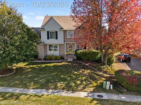 Set on a quiet street in the popular Windridge community, this over 3,000 sq ft colonial offers space to grow and thoughtful updates throughout. The main level features bamboo flooring, a welcoming foyer, home office, formal living and dining rooms, and an eat-in kitchen with white cabinetry, granite counters, and newer appliances (2019). The spacious, vaulted ceiling family room is filled with light and flows easily from the kitchen, perfect for everyday living and entertaining. A first-floor laundry room for convenience. Upstairs, the primary suite features a walk-in closet, large layout, and private bath with soaker tub, walk-in shower, and double vanity with granite counters. Three additional bedrooms share a large full bath. The daylight basement is ready to finish or use as-is for storage or play. Outside, enjoy a spacious Trex deck with gas line for grilling and a backyard with mature pine trees. Recent updates include NEW Furnace/AC (2025), new interior paint (2025), new carpet (2025), new exterior paint (2024), resurfaced driveway (2025), new blinds (2025), newer HWH (2018), and added lighting throughout. 3-car attached garage. Award winning Northville schools.