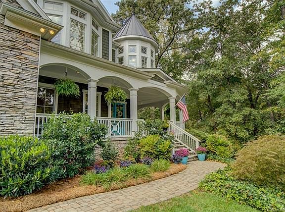 One of a kind custom home with 2nd living quarters is a tenth of a mile from greenway leading to downtown Davidson shops, dining & college. Extensive wrapped porch for tranquil views across the 3+ wooded acres. Gracious interior offers large gathering spaces & private retreats with nooks for study/hobby & star-gazing, plus movie night/game space. 6 Bedrooms, all with ensuite bath! 5 fireplaces accent main level Office, Living Room & Great Room, plus upper Master & back covered porch. A sweeping rotunda, spiral stairs & moldings/ceiling treatments add elegant touch to open floorplan. Entertainer's dream Great Room & Kitchen easily spill over to covered porch with stone hearth fireplace & conversation niches. Built-ins and gorgeous coffered ceiling accent the Great Room. Kitchen features black walnut topped eat-in island, and Stainless Thermador appliances including gas range with dual ovens (one convection) and dual pantries for all the storage you need. Main level office set by the home's entry has french doors for privacy, built-ins for display/storage and a cozy FP. A Formal Living Room with gas FP and sconce lighting leads into Formal Dining Room with wood paneled walls, tray ceiling & porch access. Soothing palette continues into Master with large His/Her walk-in closets by a sumptuous bath with walk-in shower, dual vanities & soaking tub with views of tree tops. A sitting room offers window-wrapped spot for reading, relaxing or catching up on the day. Circling around the rotunda are 4 BR ensuites. A turreted room is window wrapped for birds eye property views by day & star-gazing by night. Just below, twin desk nooks offer quiet spot for studying or gaming. Basement 2nd living quarters has inside & outside access, with over 1700 sq ft & high-end finishes. Open floorplan GR/DR & Kitchen is the centerpiece. Jewel box kitchen has window seat, great storage & eat-in island, plus more stainless appliances. Master Suite features 3 closets & ensuite bath with shower & a separate tub. Office, own Laundry & Patio space, plus private driveway to attached 1 car garage for this level. Another 1000+ sq ft of unfinished space awaits for what you need most, or serves as plentiful storage. 4 Car garage attached to main home. Detached 2 car garage has half bath, plus an upper Studio with full bath, ideal for student, overnight guests, birthday parties or hobby/fitness. Professionally landscaped yard has 10 zone irrigation & cleared, fenced area in back. Surrounding trees offer views and a tranquil setting for this private sanctuary!