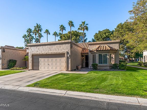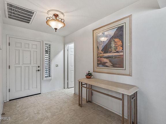 Fully furnished 2 bedrooms, 2 bath home in the coveted Hidden Palms community of Westbrook Village ** Spacious Primary En-suite has Spacious Closet. Second Bedroom features custom built-ins for a perfect office or guest room. ** Energy saving Windows have been installed in home**Eat-in kitchen with ample cabinets has access to the covered patio for additional outdoor dining. ** St. Thomas floorplan; Corner End Unit Overlooking Lush HOA maintained Landscaping; Located close to community pool for the residents of Hidden Palms. ** Westbrook Village is an adult community with 2 Heated pools, pickleball, tennis courts, fitness center, multiple clubs with public golf course. Affordable carefree living awaits you here. Conveniently located near the 101, shopping and entertainment districts. ** Special Assessment was approved by the Homeowners on January 22, 2025.