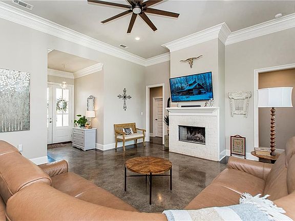 Elegance with a touch of farmhouse describes this beautiful French country home. The lush landscaping provides great curb appeal. The foyer entrance opens up to a spacious living room with 12ft ceilings, wood burning fireplace and tons of natural lighting. Chef's kitchen offers a large breakfast island with storage, granite countertops and stainless steel appliances. Primary bedroom has a fabulous ensuite experience where you can relax in an oversized soaker tub or enjoy a steamy walk-in shower. The outdoor patio is an entertainer's delight and includes a cozy fire pit. This beautiful home is equipped with working hurricane shutters, including an electric rollup shutter over the front door. The windows also have a transferable lifetime warranty.